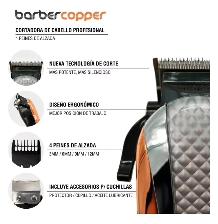 Incluye: Protector de cuchilla / Aceite Lubricante / Cepillo de limpieza